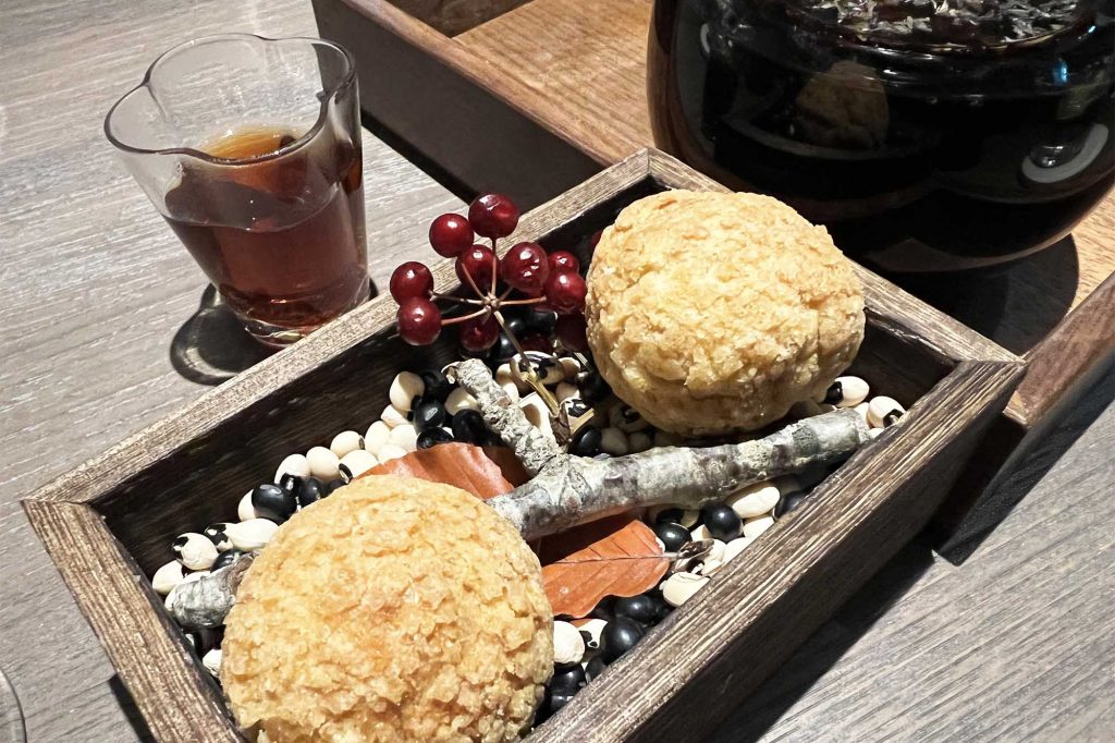 ➡black sesame mochi puff/pu’er chrysanthemum tea
